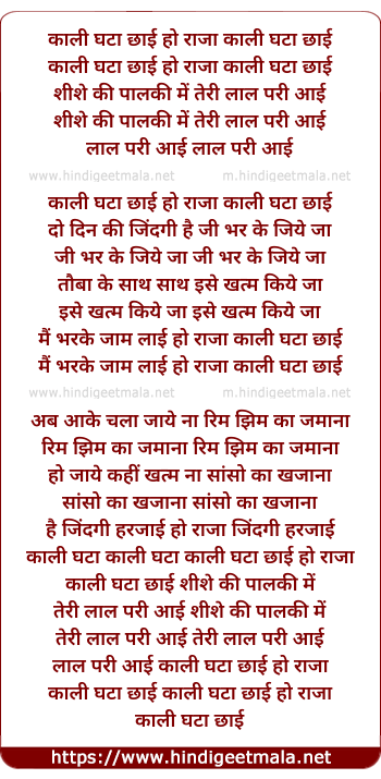 Lyrics of Kaali Ghata Chayi Ho Raja - काली घटा छाई हो राजा काली घटा छाई