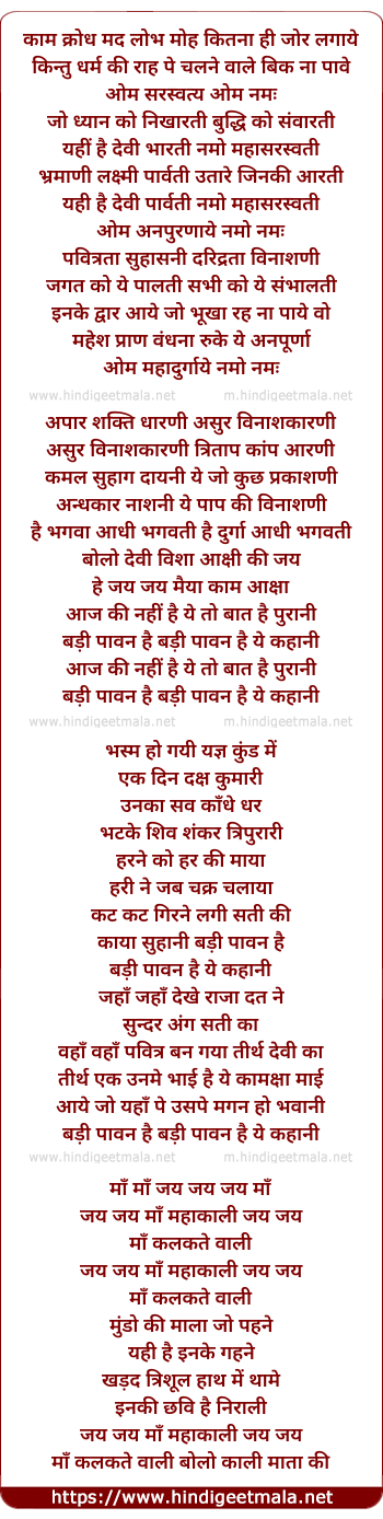 hey jai jai maiya kaam aaksha