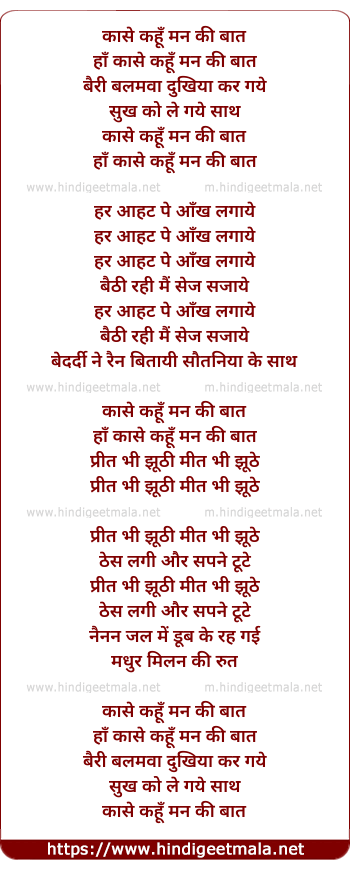 Lyrics of Kaase Kahun Man Ki Baat - कासे कहूँ मन की बात