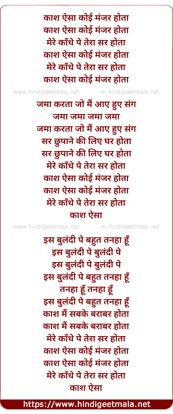 Lyrics of Kaash Aisa Koi Manjar Hota - काश ऐसा कोई मंजर होता