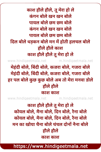 Lyrics of Kaash Haule Haule Tu Meraa Ho Le - काश हौले हौले, तू मेरा हो ले