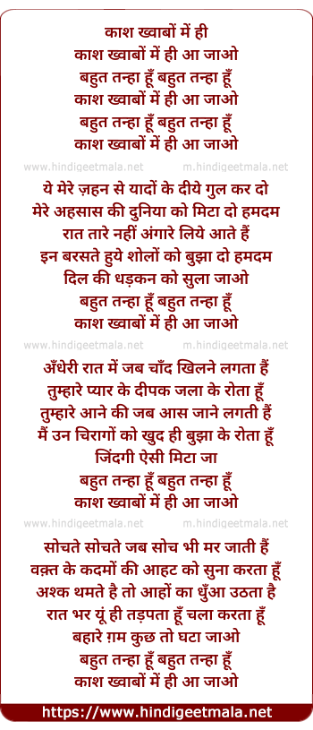 Lyrics of Kaash Khwabon Mein Hi Aa Jaao - काश ख्वाबों में ही