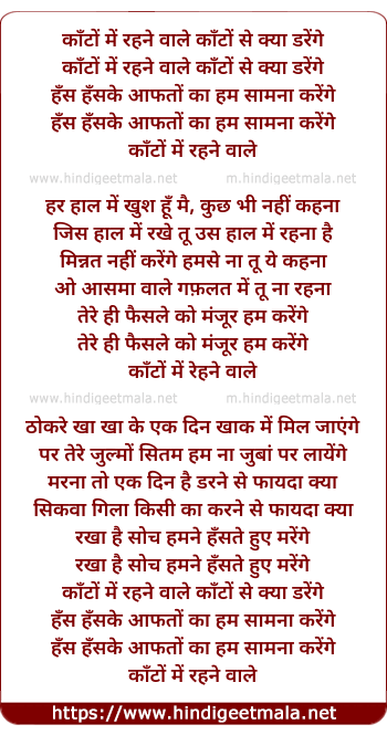 Lyrics of Kaaton Me Rehne Wale Kaaton Se Kya Darege - काँटों में रहने वाले काँटों से क्या डरेंगे