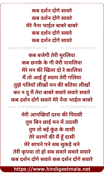 Lyrics of Kab Darshan Doge Saanwre - कब दर्शन दोगे सावरे