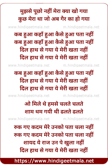 Lyrics of Kab Hua Kahan Hua Kaise Hua Pata Nahi - कब हुआ कहाँ हुआ कैसे हुआ पता नहीं