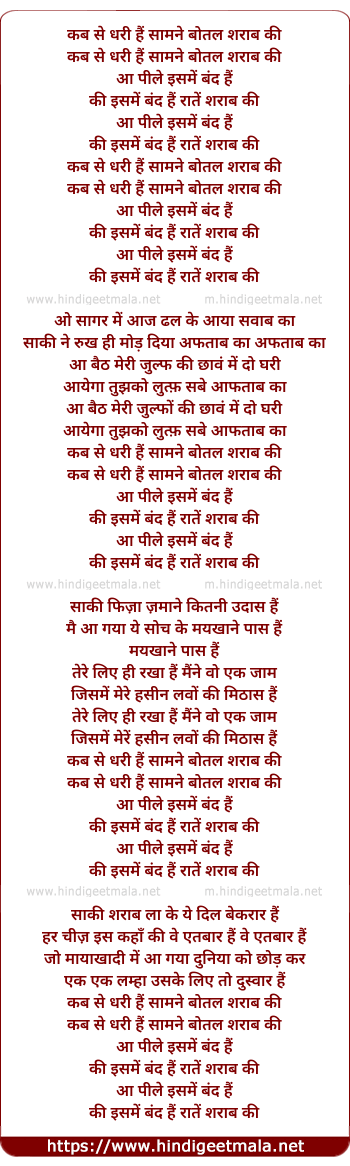 Lyrics of Kab Se Dhari Hai Saamne Botal Sharab Ki - कब से धरी हैं सामने बोतल शराब की