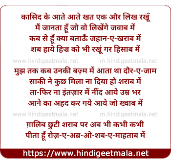 gaalib chhuti asharaab par ab bhi kabhi kabhi
