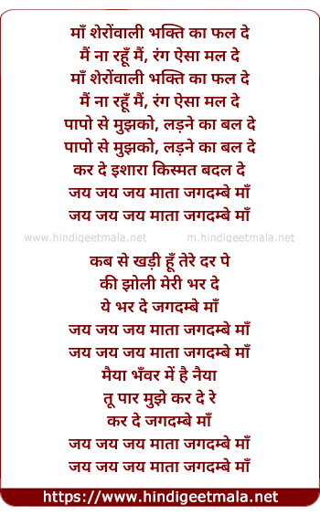 Lyrics of Kab Se Khadi Hu Jagdambe Maa (2) - माँ शेरोंवाली भक्ति का फल दे
