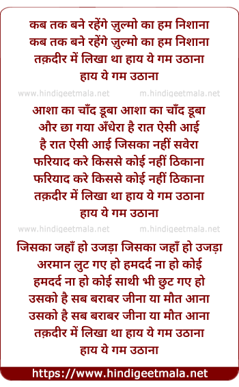 Lyrics of Kab Tak Bane Rahenge Zulmo Ka Hum Nishana - कब तक बने रहेंगे ज़ुल्मो का हम निशाना