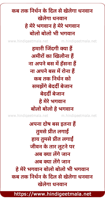 Lyrics of Kab Tak Nirdhan Ke Dil Se Khelega Dhanwan - कब तक निर्धन के दिल से खेलेगा धनवान