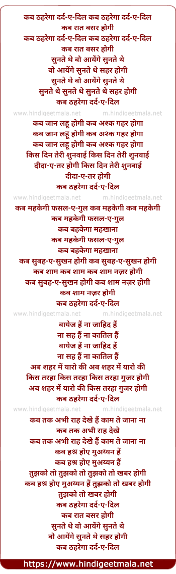 Lyrics of Kab Thahrega Dard-E-Dil - कब ठहरेगा दर्द-ए-दिल कब ठहरेगा दर्द-ए-दिल