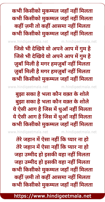 Lyrics of Kabhee Kisee Ko Mukammal Jahaan - कभी किसी को मुकम्मल जहाँ