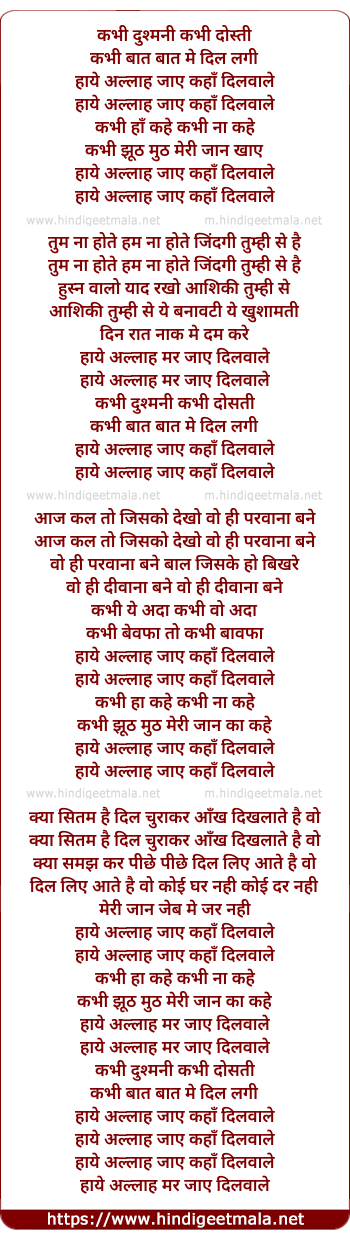 Lyrics of Kabhi Dushmani Kabhi Dosti - कभी दुश्मनी कभी दोस्ती