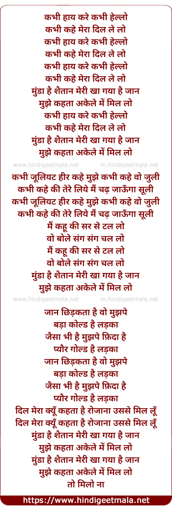 Lyrics of Kabhi Hi Kare Kabhi Hello - कभी हाय करे कभी हेल्लो