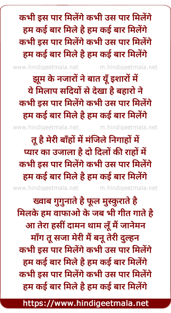 Lyrics of Kabhi Is Paar Milenge - कभी इस पार मिलेंगे