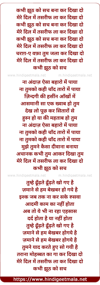 Lyrics of Kabhi Jhoot Ko Such - कभी झूठ को सच बना कर दिखा दो