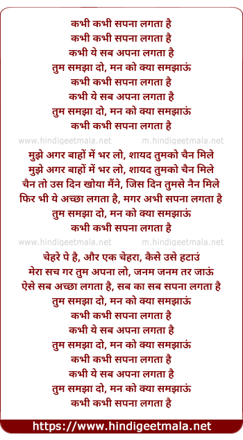 Lyrics of Kabhi Kabhi Sapanaa Lagataa Hai - कभी कभी सपना लगता है