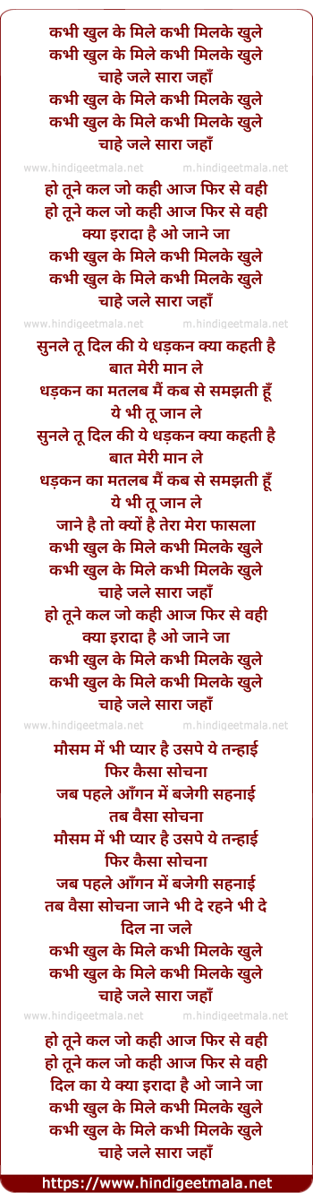 Lyrics of Kabhi Khul Ke Mile, Kabhi Milke Khule - कभी खुल के मिले ,कभी मिलके खुले