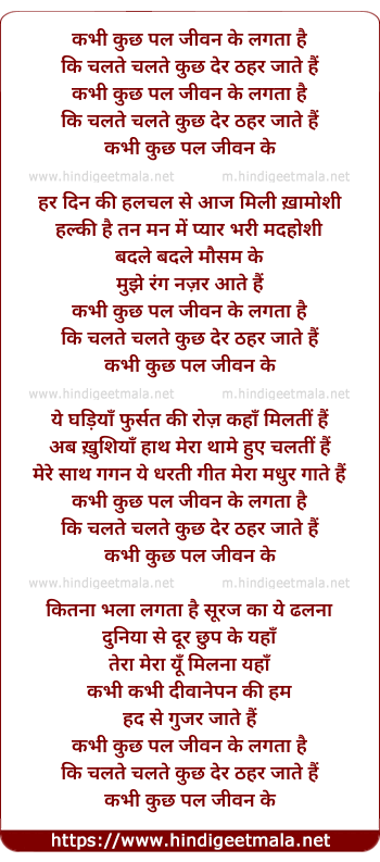 Lyrics of Kabhi Kuchh Pal Jeevan Ke Lagta Hai - कभी कुछ पल जीवन के लगता है