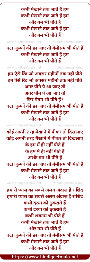 Lyrics of Kabhi Maikhane Tak Jaate Hai Hum - कभी मैखाने तक जाते हैं हम