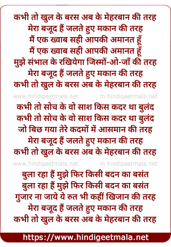 Lyrics of Kabhi To Khul Ke Baras Ab Re Maharban - कभी तो खुल के बरस अब के मेहरबान की तरह