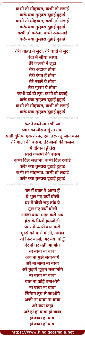 Lyrics of Kabhi To Mohabbat Kabhi To Ladaai - कभी तो मोहब्बत, कभी तो लड़ाई