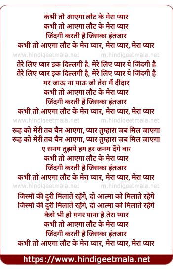 Lyrics of Kabhi Toh Aayega Laut Ke Mera Pyaar - कभी तो आएगा लौट के मेरा प्यार