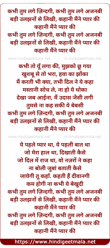Lyrics of Kabhi Tum Lage Zindagi - कभी तुम लगे ज़िन्दगी, कभी तुम लगे अजनबी