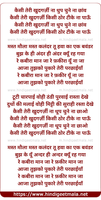 re kabira maan jaa re fakeera yu na ja