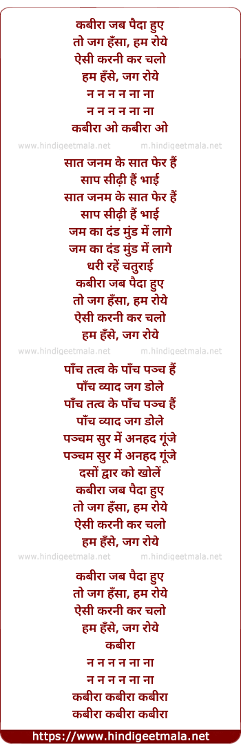 Lyrics of Kabiraa - कबीरा जब पैदा हुए