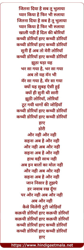 Lyrics of Kachchi Doriyaan - कच्ची डोरियां