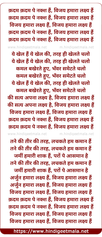 Lyrics of Kadam Kadam Pe Naksh Hai - क़दम क़दम पे नक्श हैं, विजय हमारा लक्ष्य हैं