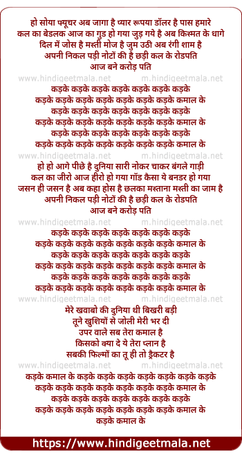 Lyrics of Kadke Kamal Ke - कड़के कमाल ले