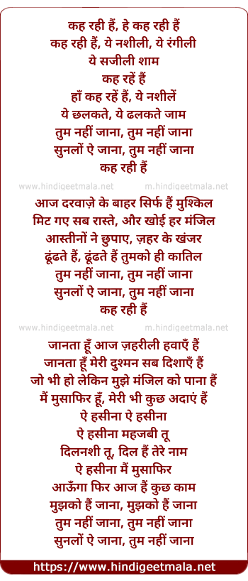 Lyrics of Kah Rahe Hai - कह रही हैं