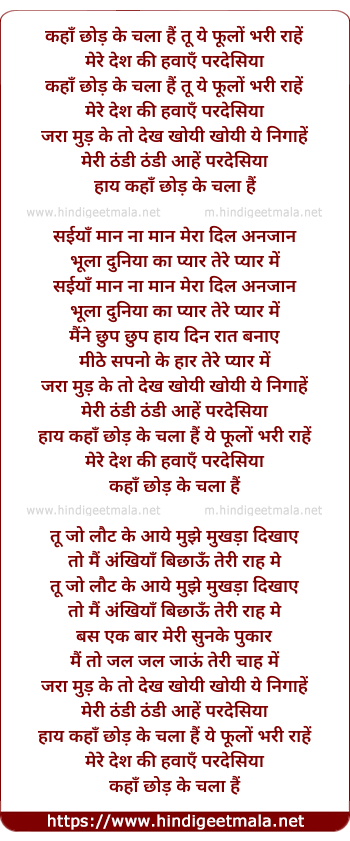 Lyrics of Kaha Chhod Ke Chala Hai Tu - कहाँ छोड़ के चला हैं तू