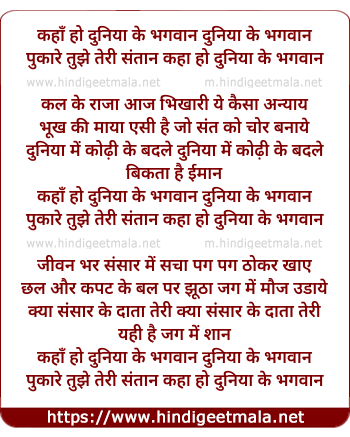 Lyrics of Kaha Ho Duniya Ke Bhagwan - कहाँ हो दुनिया के भगवान