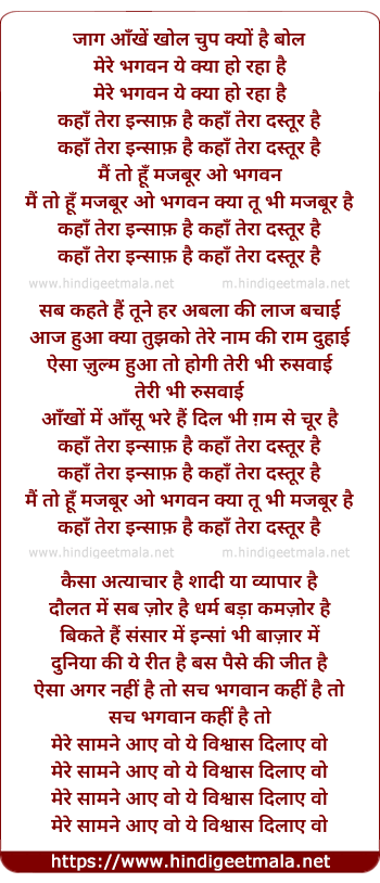 Lyrics of Kaha Tera Insaf Hai - कहाँ तेरा इन्साफ़ है