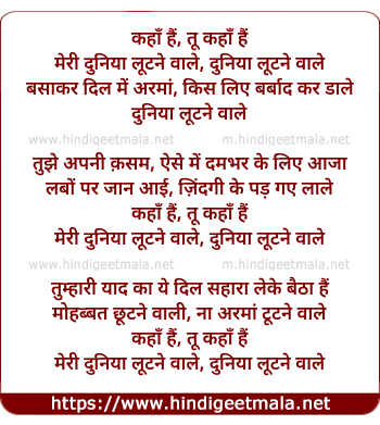 Lyrics of Kahaan Hai, Too Kahaan Hai - कहाँ हैं, तू कहाँ हैं