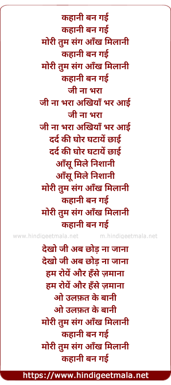 Lyrics of Kahaani Ban Gayi Mori Tum Sang Aankh Milaani - कहानी बन गई
