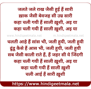 Lyrics of Kahan Chali Gayi Hai Saali Khushi - कहाँ चली गयी हैं साली ख़ुशी