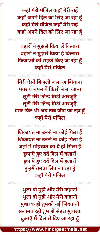 Lyrics of Kahaan Meri Manzil Kahan Meri Rahen - कहाँ मेरी मंजिल कहाँ मेरी राहें