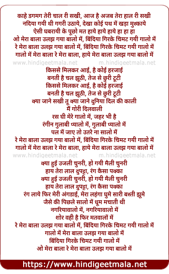re mera baala ulajh gaya baalo me, bindiya girke chimat gayi gaalo me