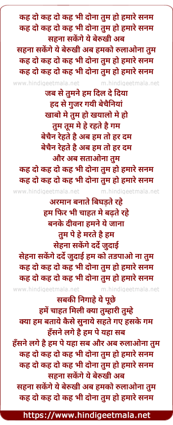 Lyrics of Kahe Do Kahe Do Keh Bhi Do (Male Version) - कह दो कह दो कह भी दोना तुम हो हमारे सनम