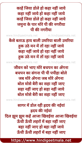 Lyrics of Kahe Jiya Dole Ho Kaha Nahi Jaye - काहें जिया डोले हो कहा नहीं जाये