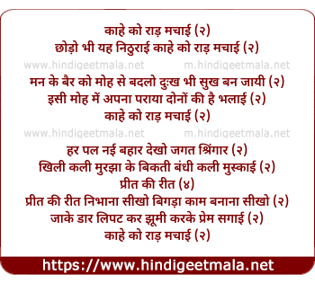 Lyrics of Kahe Ko Rad Machai - काहे को राड़ मचाई (२)