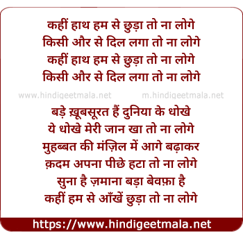 Lyrics of Kahee Hath Ham Se Chhuda Toh Na Loge - कहीं हाथ हम से छुड़ा तो ना लोगे