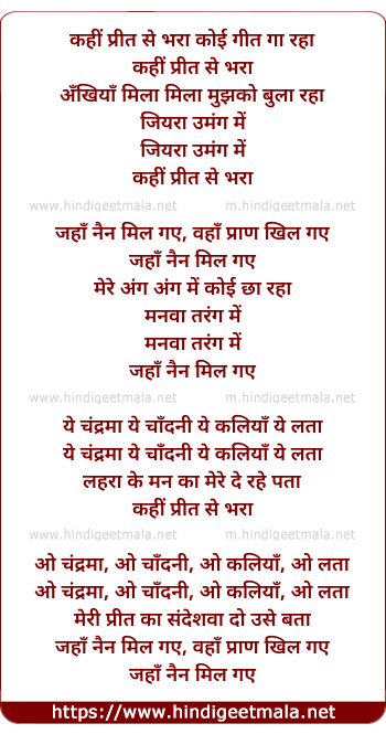 Lyrics of Kahee Prit Se Bhara Koyee Git Ga Raha - कहीं प्रीत से भरा कोई गीत गा रहा