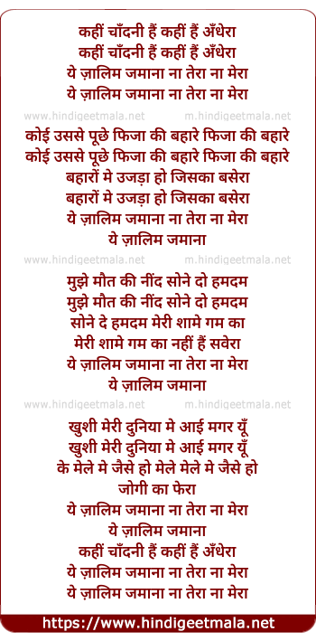 Lyrics of Kahi Chandni Hai Kahi Hai Andhera - कहीं चाँदनी हैं कहीं हैं अँधेरा