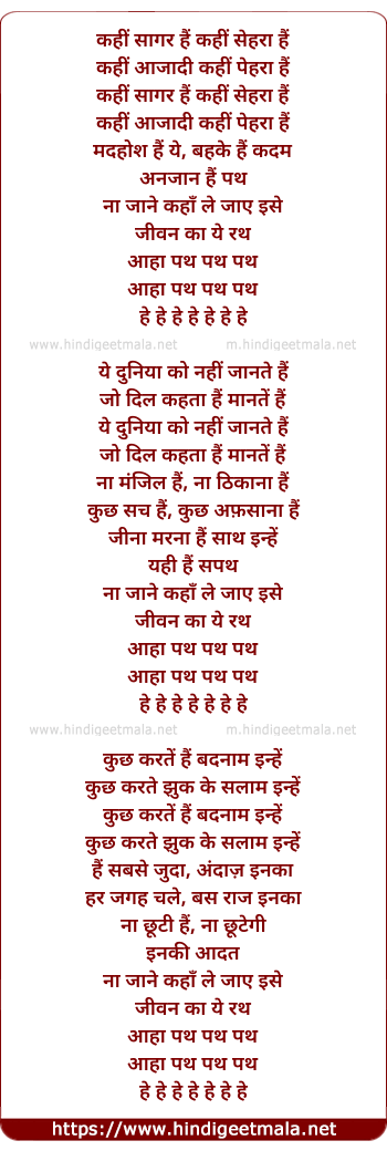 Lyrics of Kahi Sagar Hai - कहीं सागर हैं