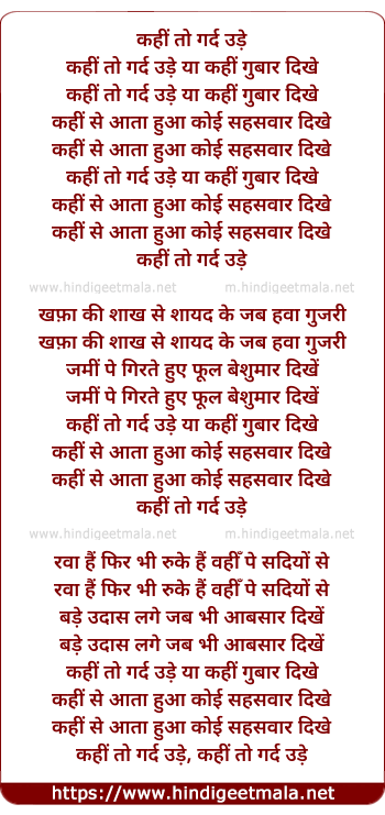 Lyrics of Kahi To Gard Ude - कहीं तो गर्द उड़े